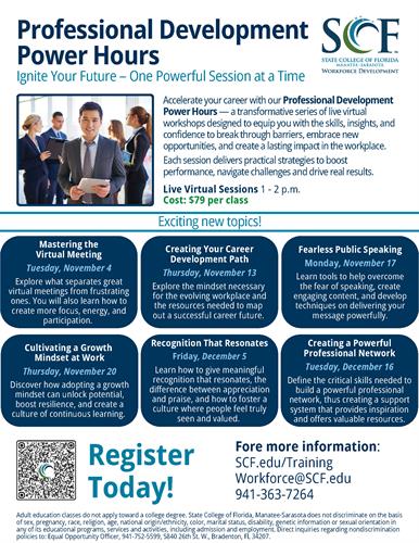 Accelerate your career with our Professional Development Power Hours — a transformative series of live virtual workshops designed to equip you with the skills, insights, and confidence to break through barriers, embrace new opportunities, and create a lasting impact in the workplace. Each session delivers practical strategies to boost performance, navigate challenges, and drive real results.